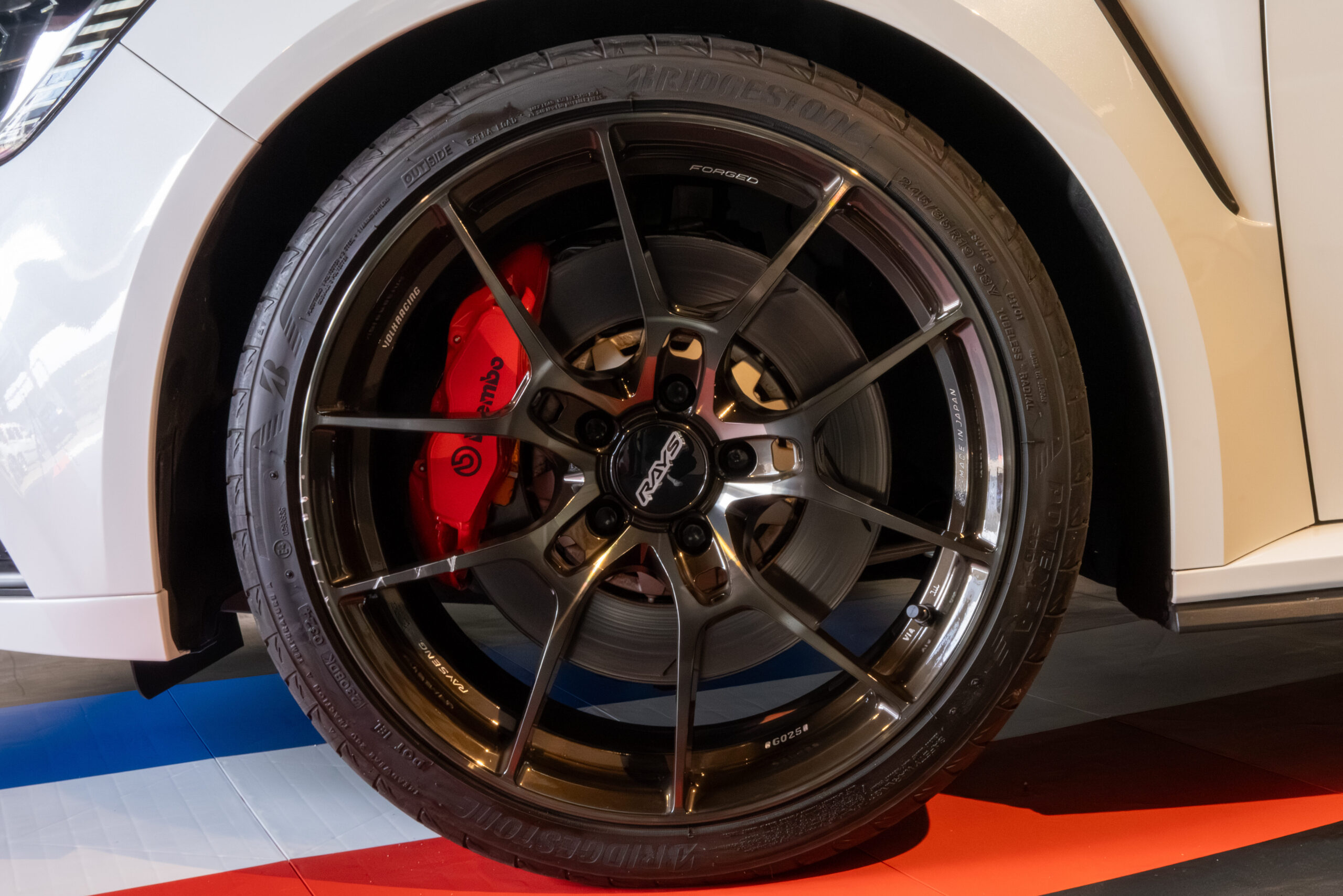 純正ナビ、ディスプレイオーディオ、バックカメラ、Bluetooth、ETC、前後ドラレコ、デジタルインナーミラー、純正レカロバケットシート、純正ブレンボキャリパー、RAYS19inc鍛造アルミホイール、社外マフラー、COX社製ボディーダンパー、社外リアウィング